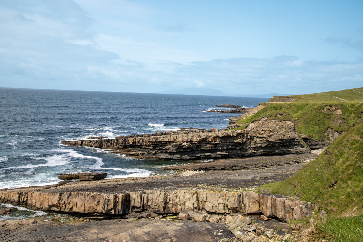 A sunny day lured me out of the house. I jumped into the car and drove to Castle Cassiebawn, eager to see how it would look after the rain. The landscape was breathtaking, with the cliffs and ocean glistening in the sunlight.